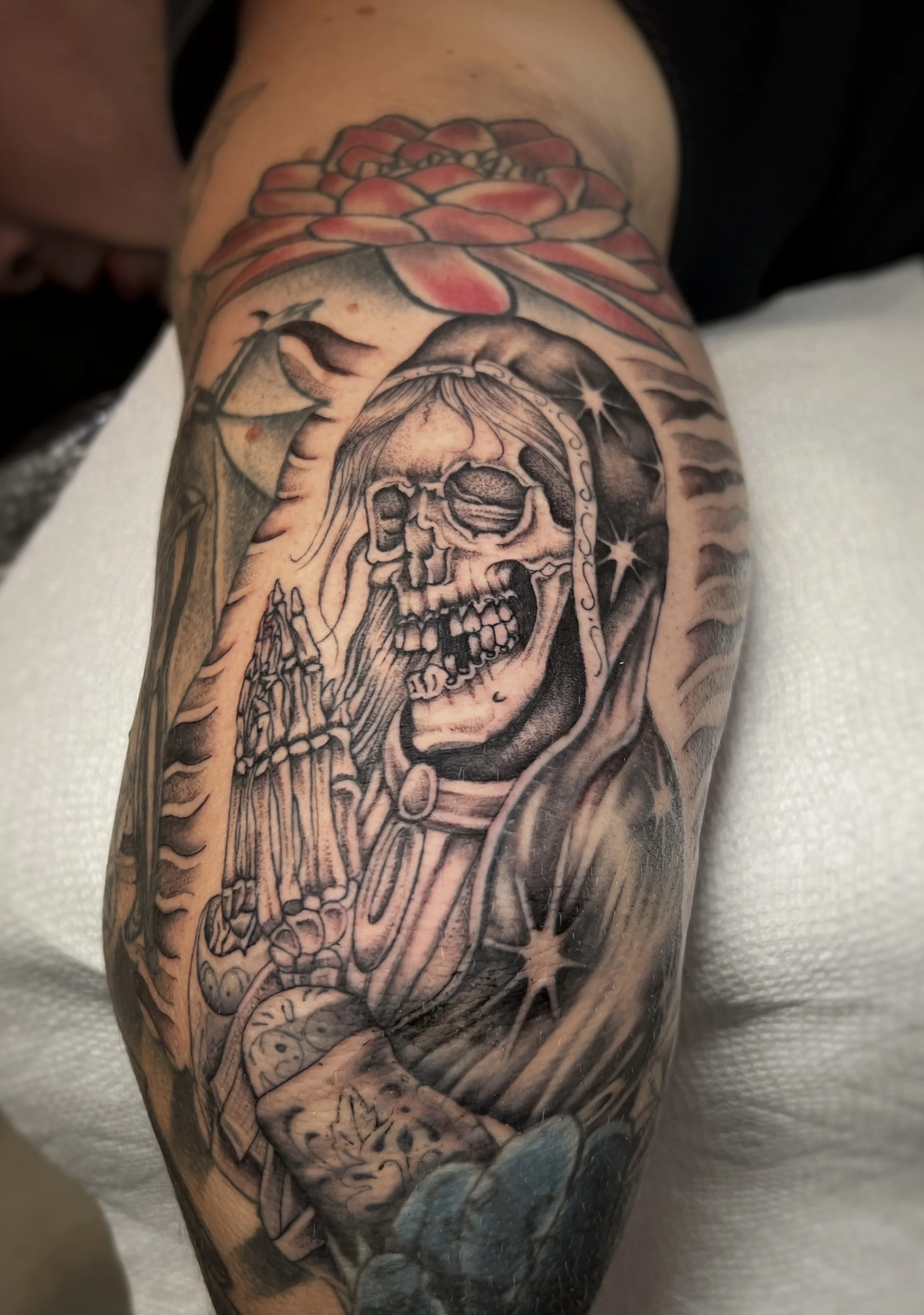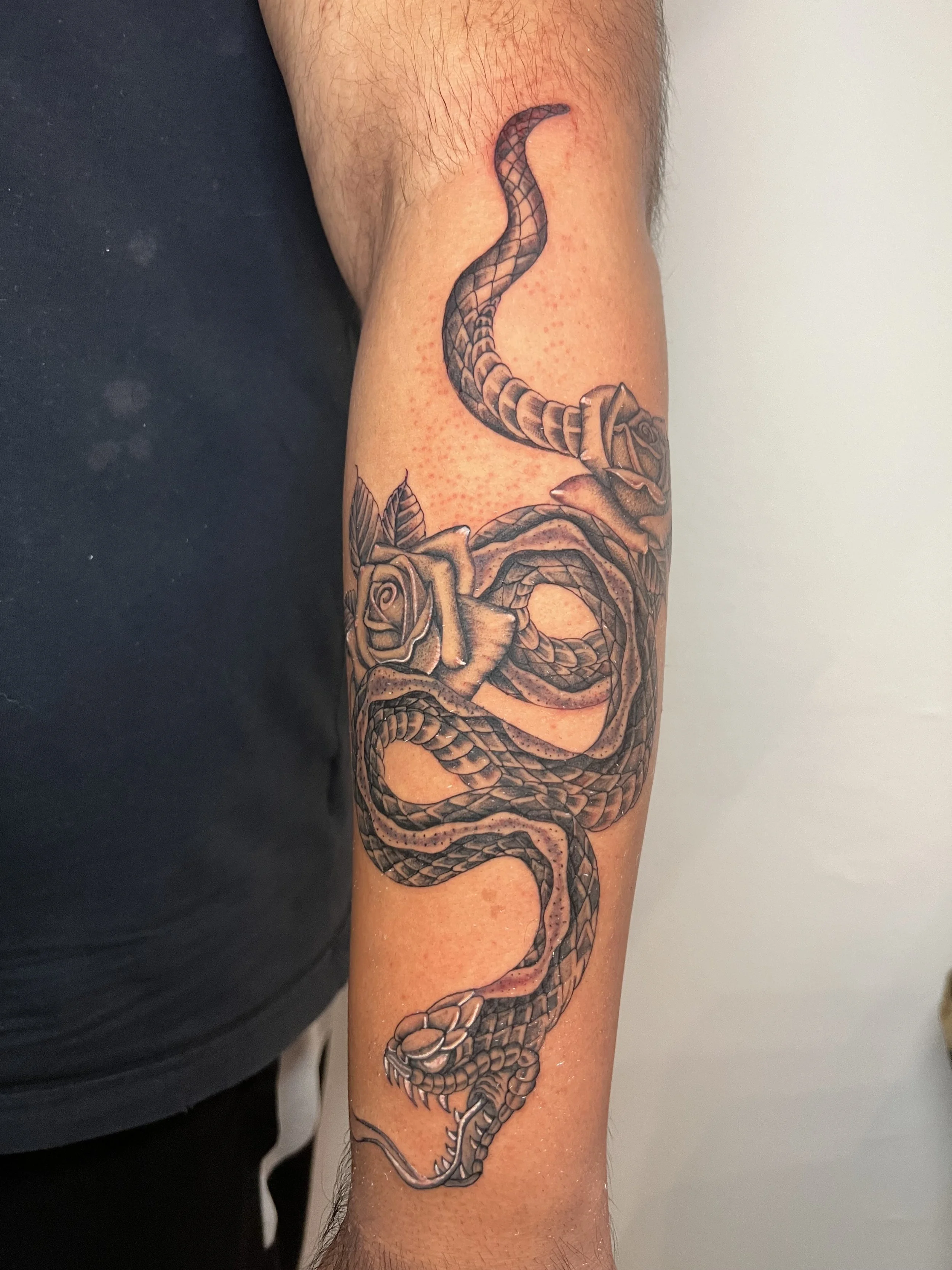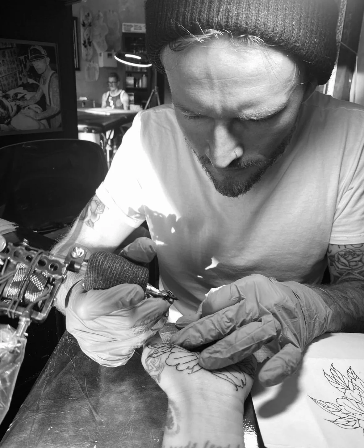 My name is Jesse Showalter and I’m 29 years old. I was born and raised in Los Angeles, California, specifically North Hollywood. I’d say skateboarding was my passion until tattooing, counter culture, expression/creativity and freedom are a few things I love about them both. I’ve been tattooing for 4 years now and have worked under Frank Ball Jr. the past year, who has been like a mentor and good homie to me. The shop is located in Venice Beach California and is named FiveBall Studios. By far the best shop I’ve worked at and beyond stoked for the opportunity. I tattoo a lot of fine-line black & grey and traditional tattoos. My hourly rate is $200 an hour and minimum is $150. Here’s some photos to check out, please reach out through my email for appointments showaltertattoo@gmail.com